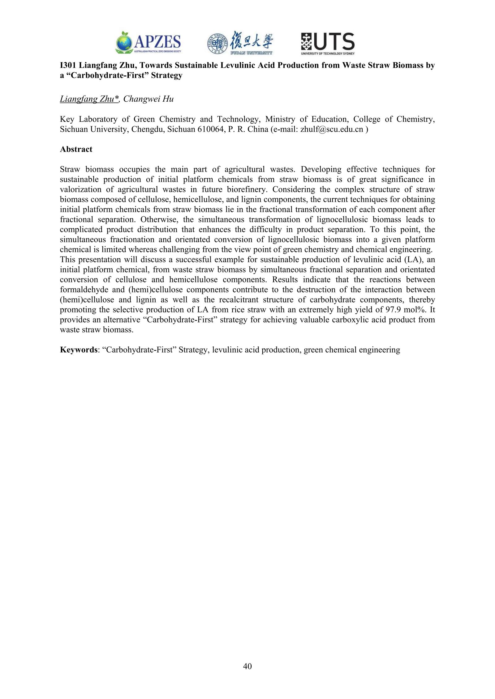 PZETS-2025 Oral Presentation:Towards Sustainable Levulinic Acid Production from Waste Straw Biomass by a “Carbohydrate-…