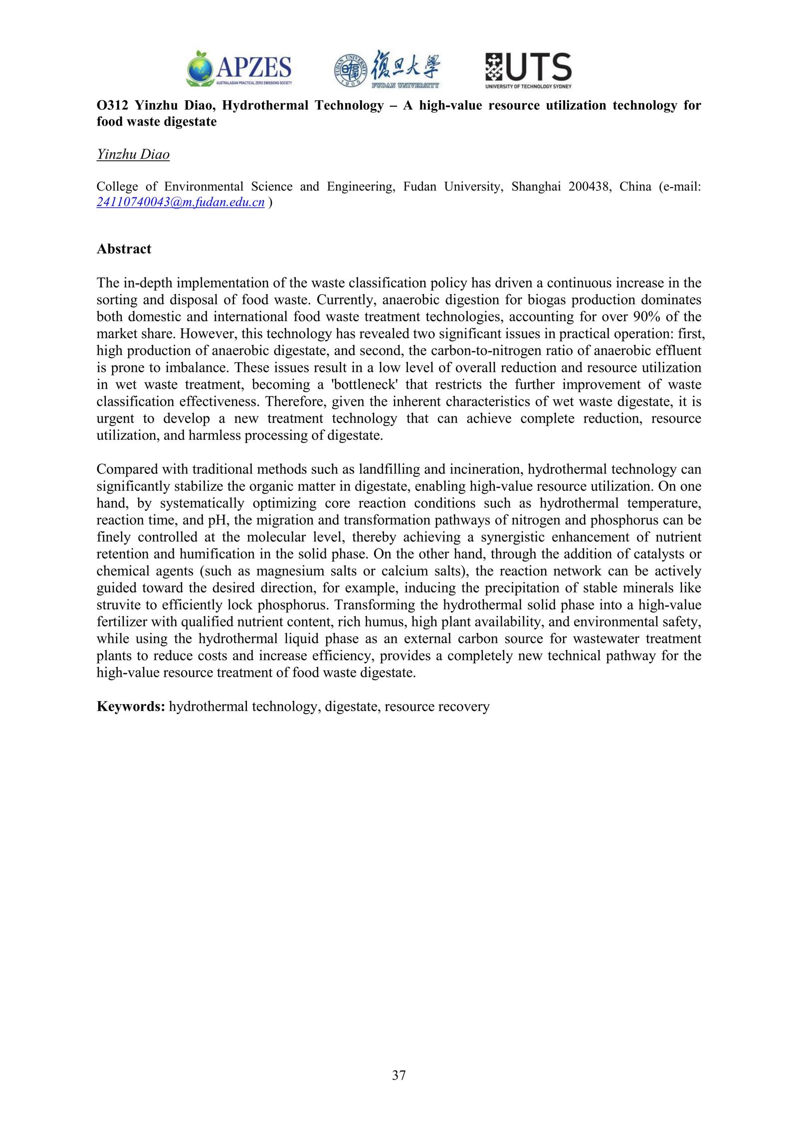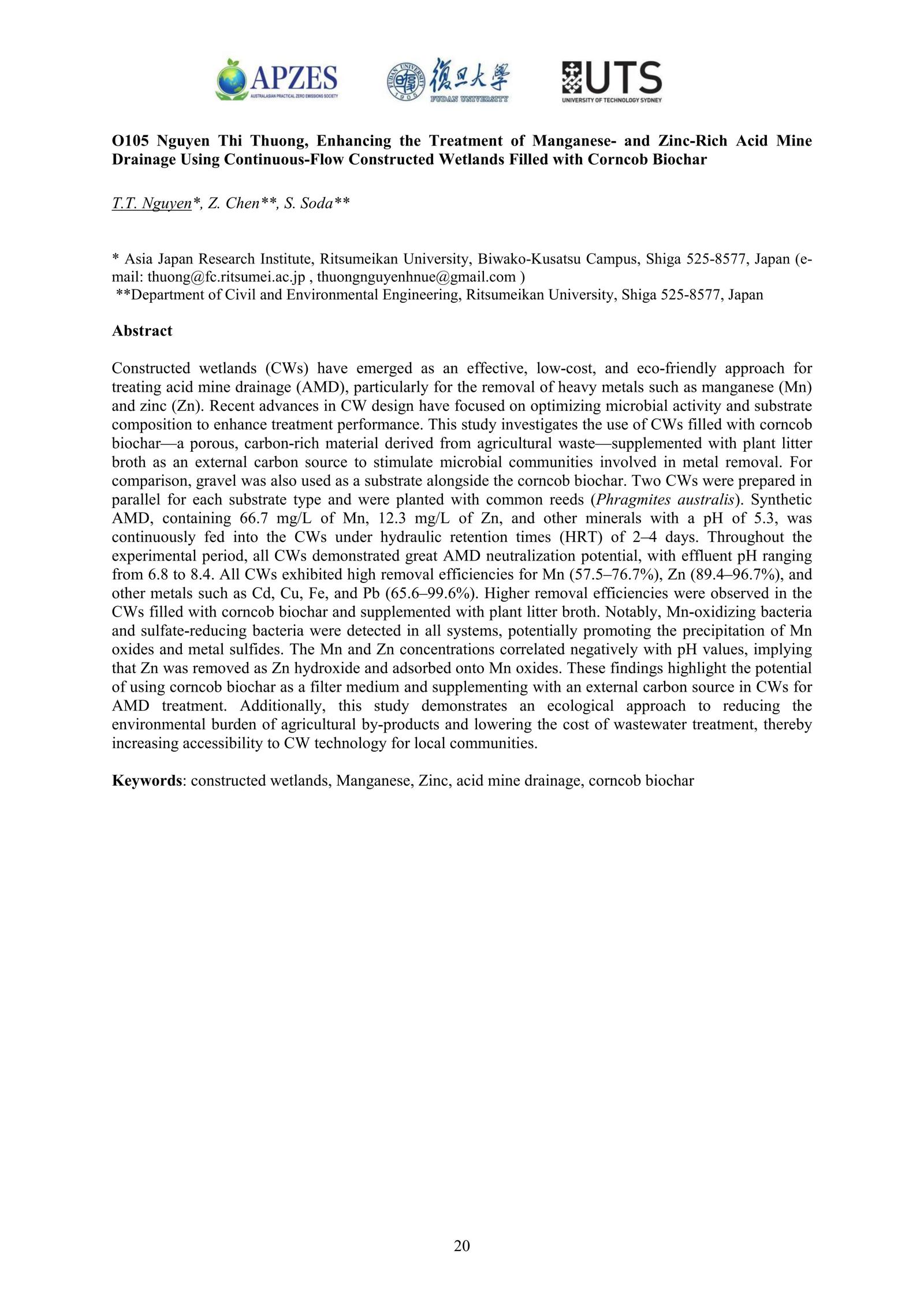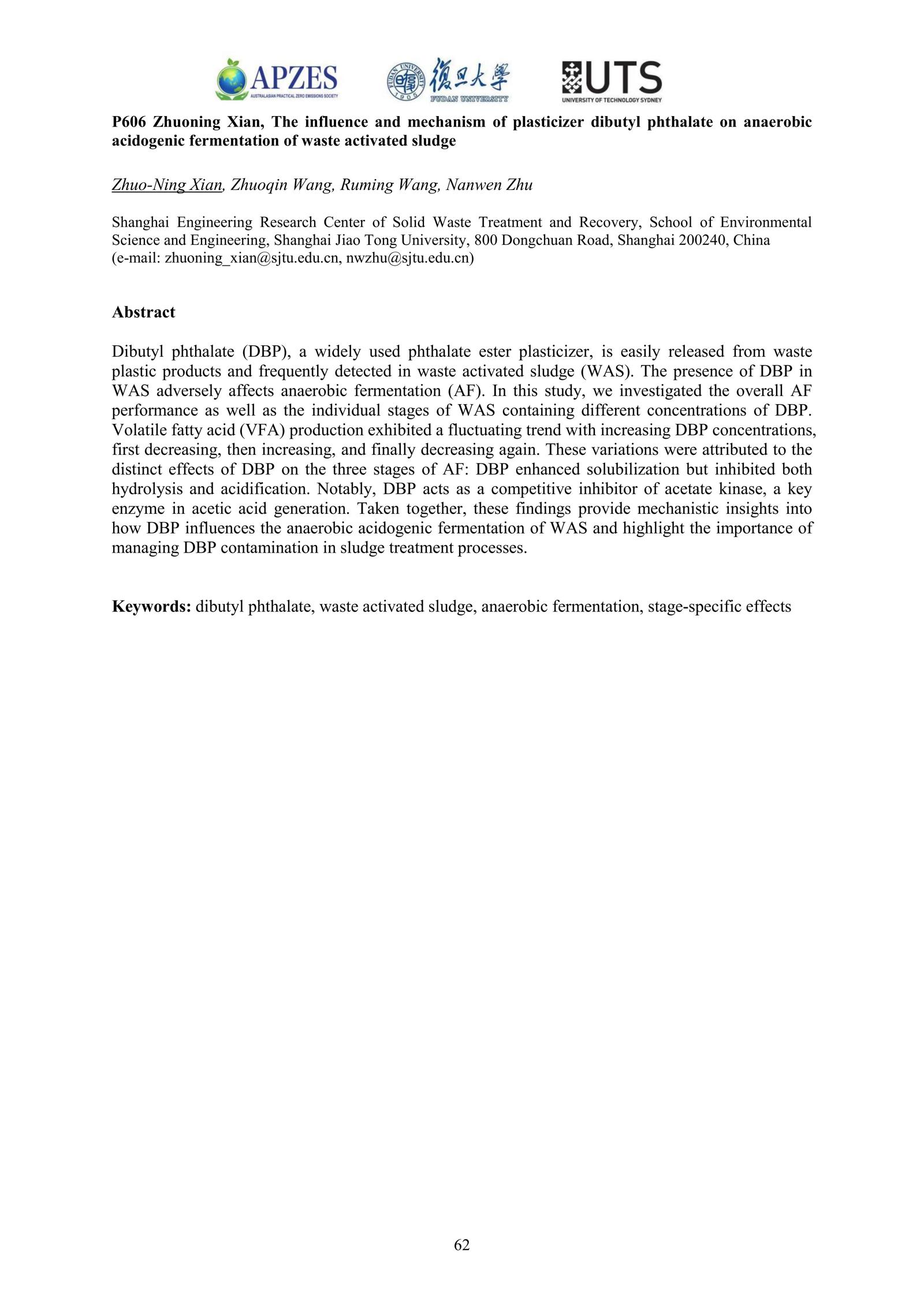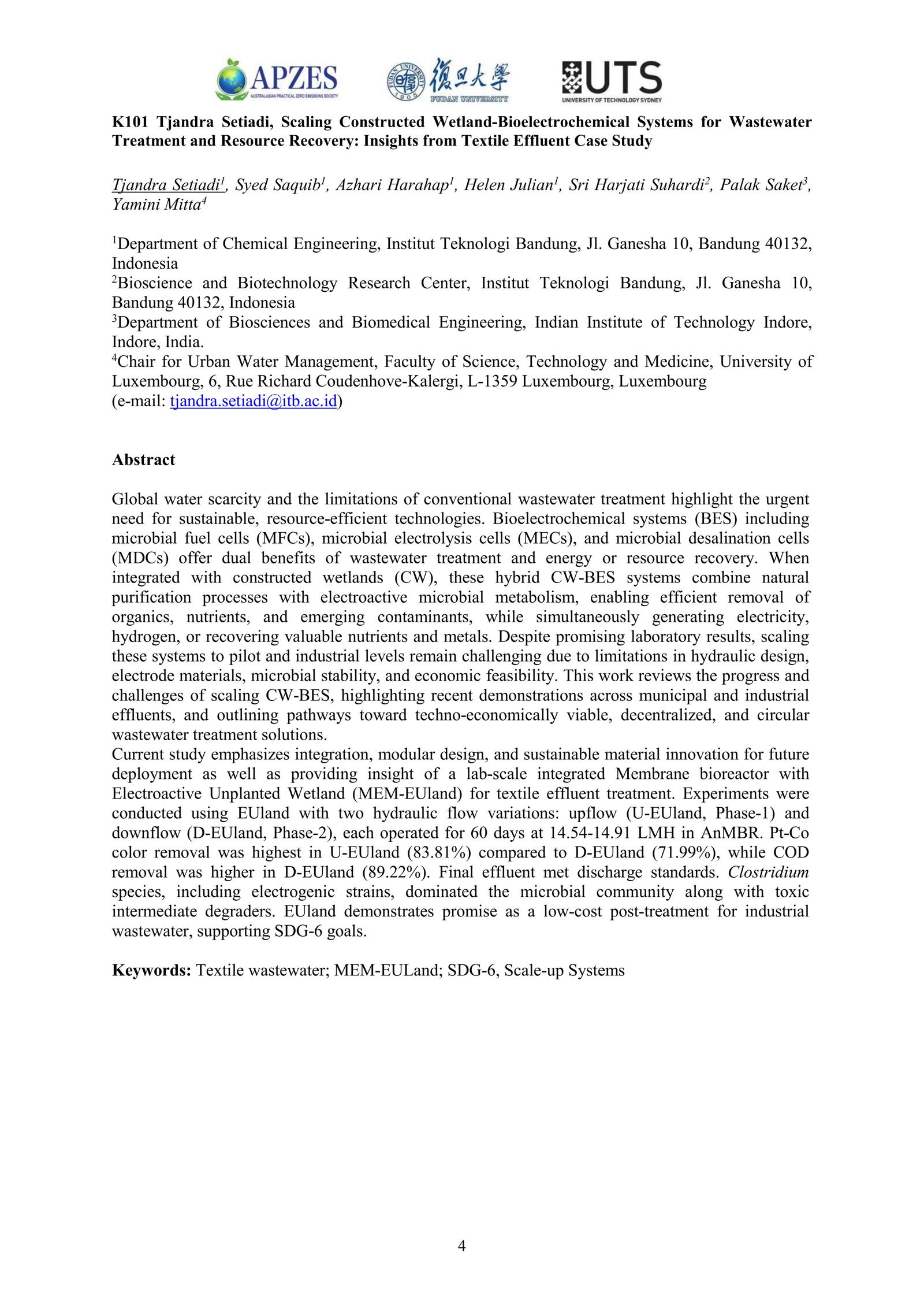 (On behalf of Prof Huu Hao Ngo (the Founder/Executive Coordinator of the APZES), host organizer, co-organizers, and the APZES's Board of Directors)