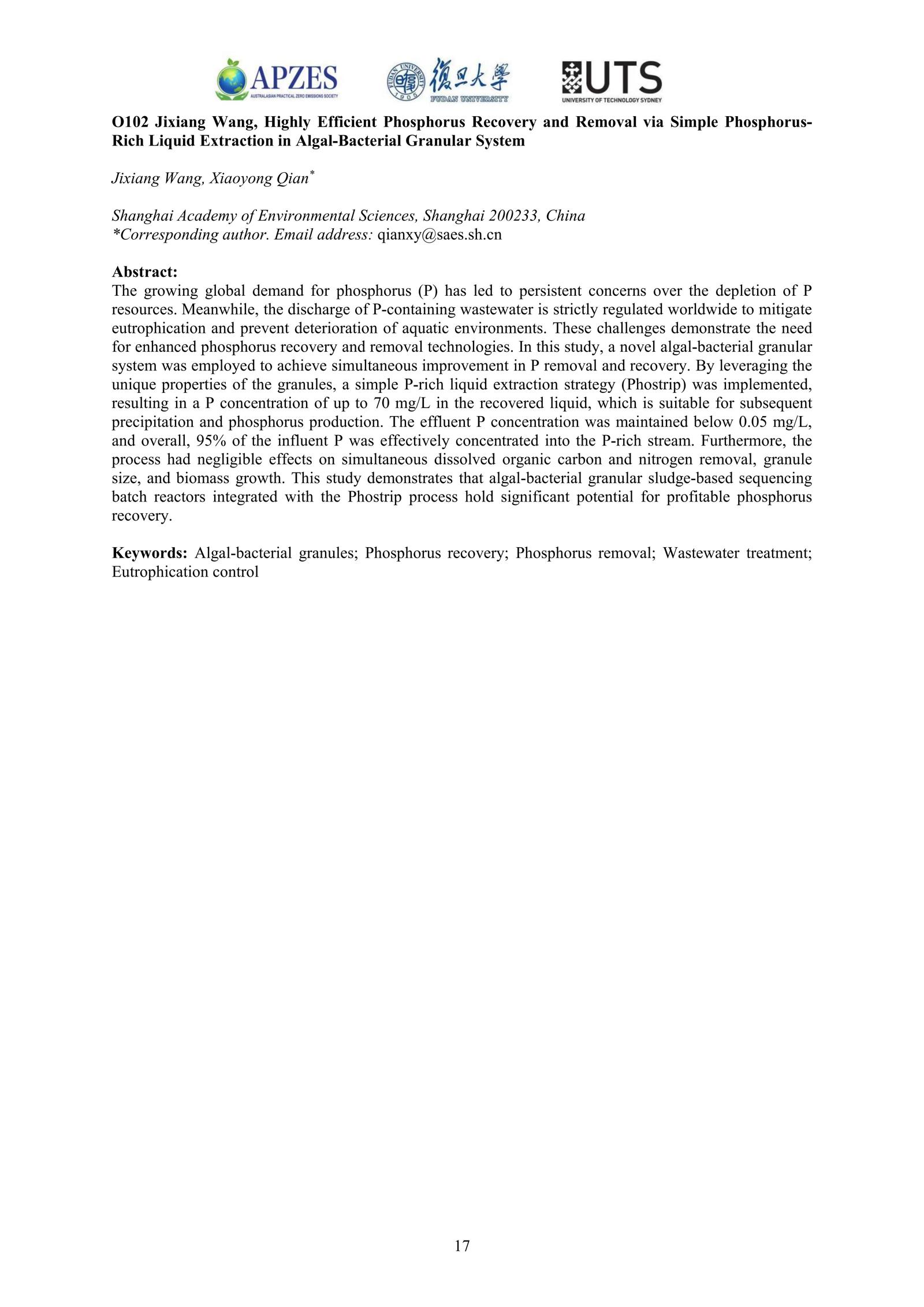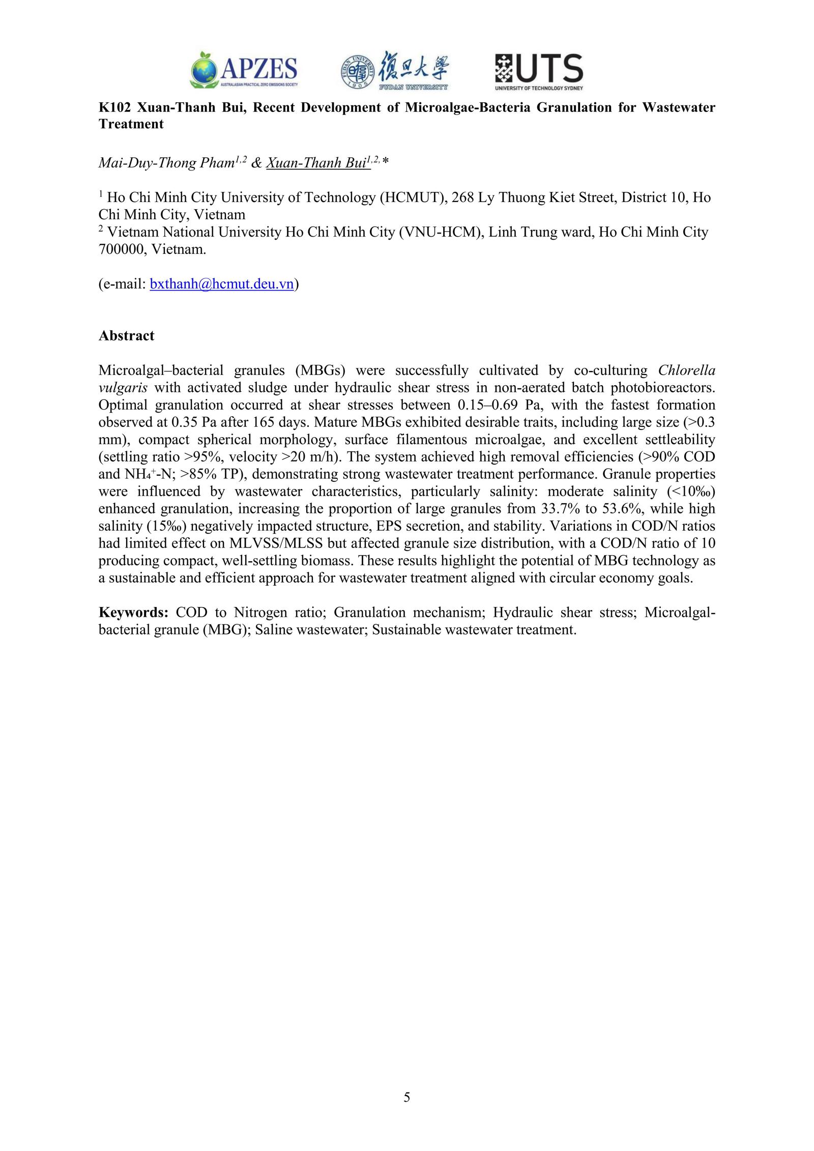 PZETS-2025 Oral Presentation:Recent Development of Microalgae-Bacteria Granulation for Wastewater Treatment