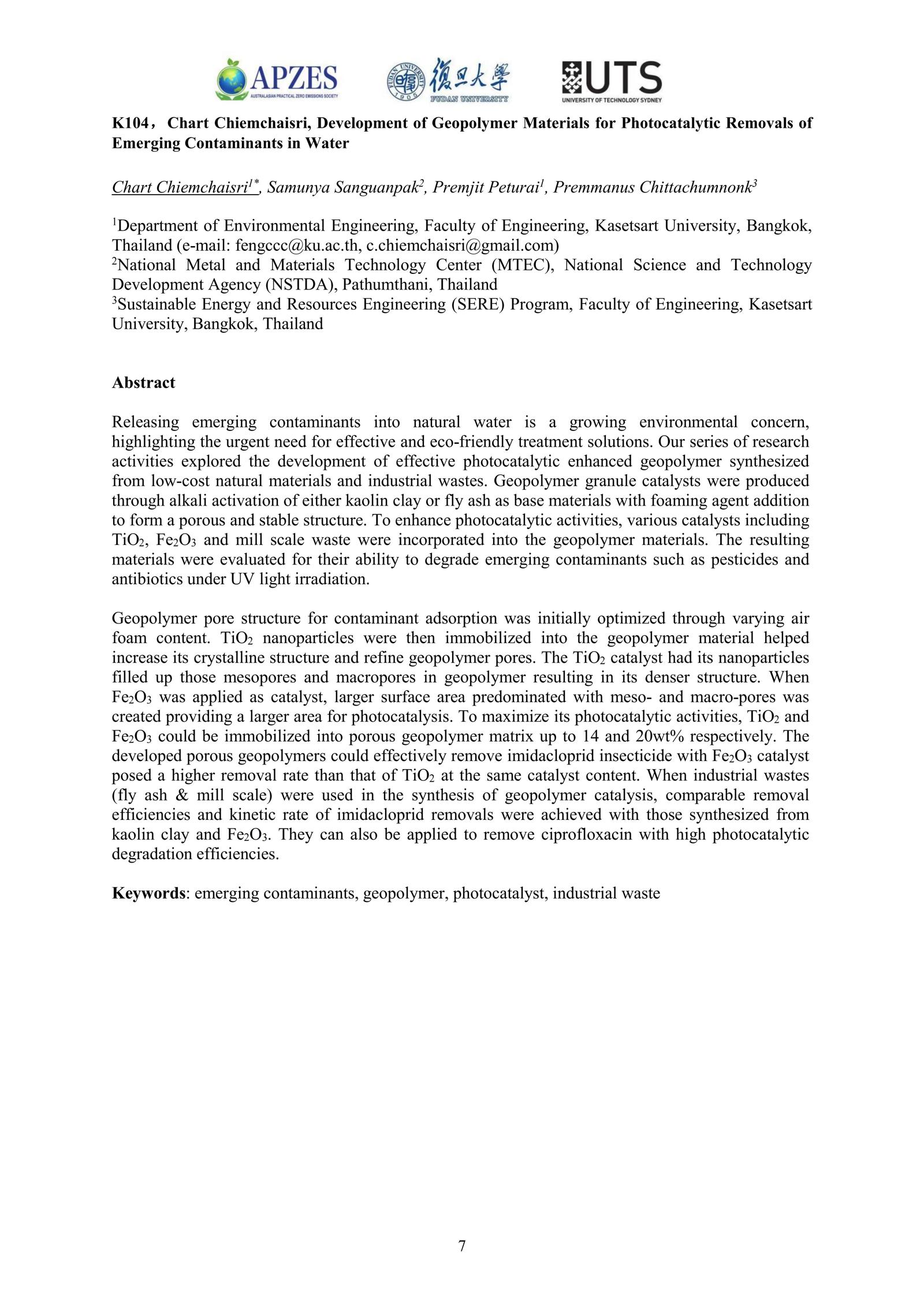 PZETS-2025 Oral Presentation:Development of Geopolymer Materials for Photocatalytic Removals of Emerging Contaminants i…