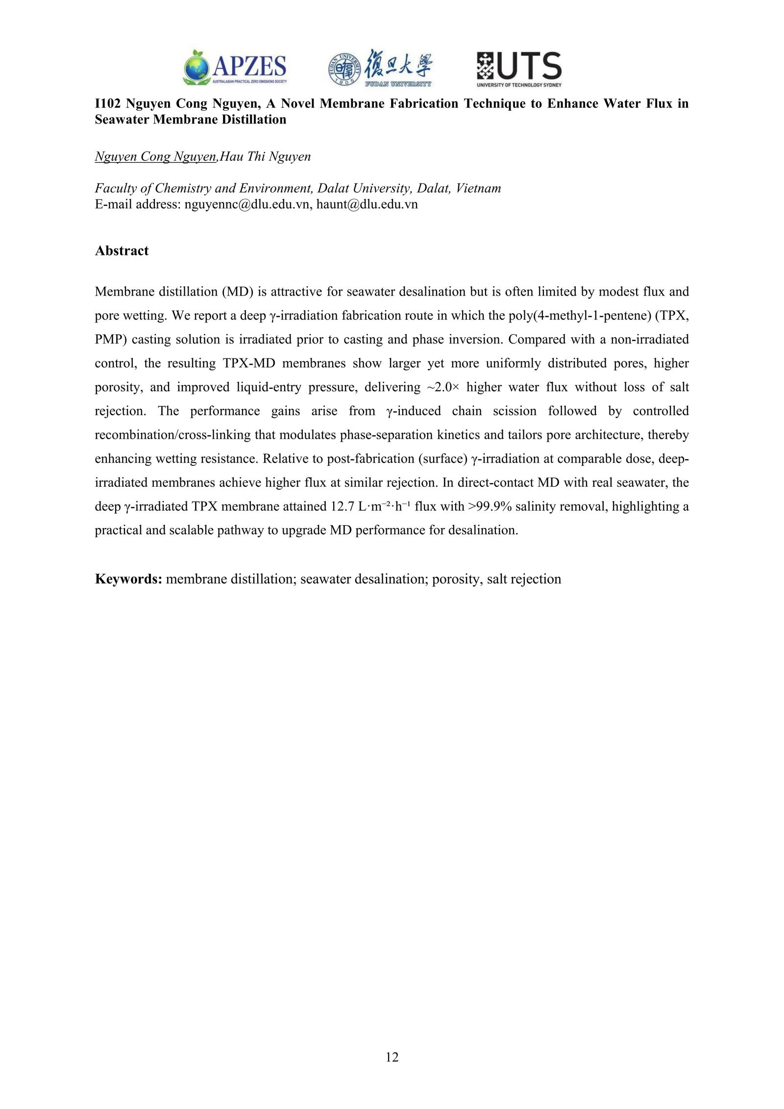 PZETS-2025 Oral Presentation:A Novel Membrane Fabrication Technique to Enhance Water Flux in Seawater Membrane Distilla…