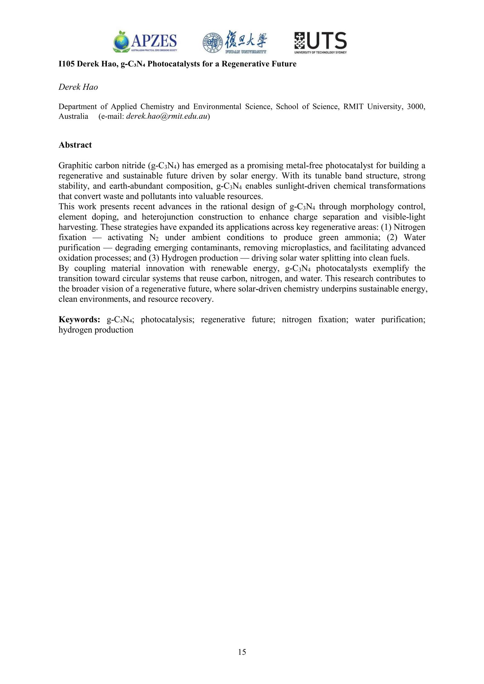 PZETS-2025 Oral Presentation:g-C₃N₄ Photocatalysts for a Regenerative Future