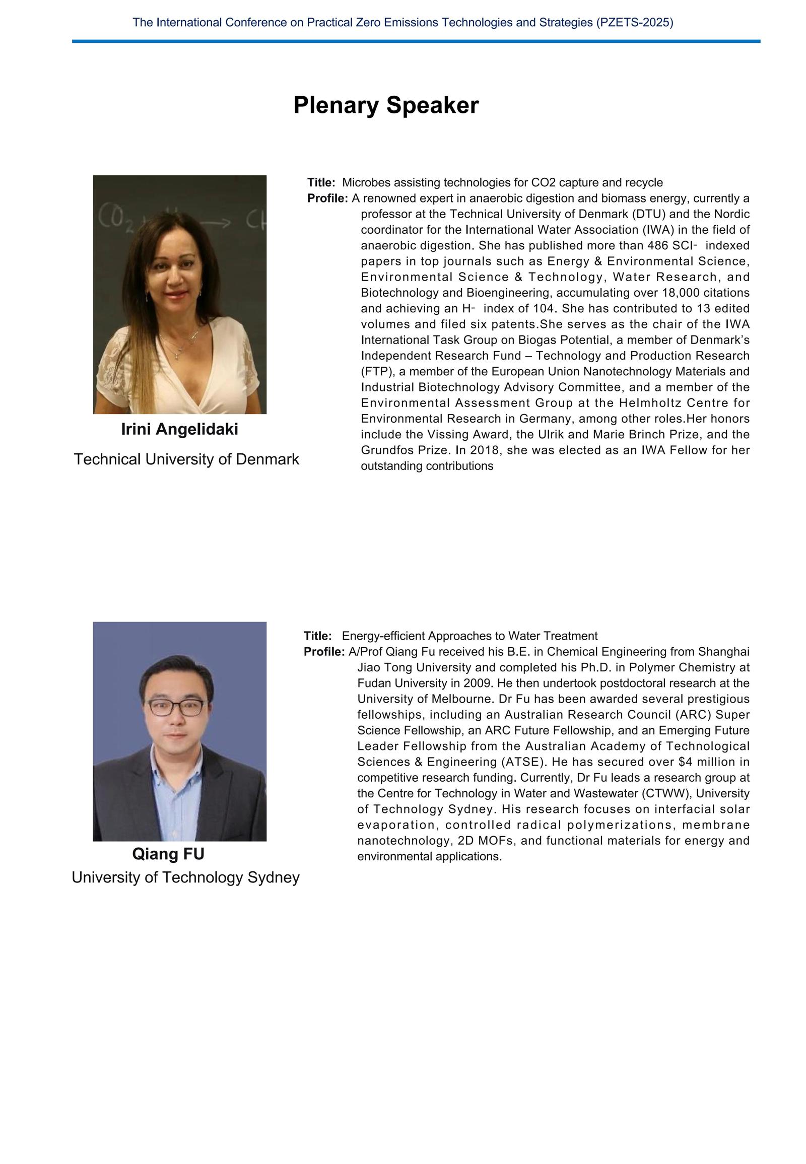 Countries and local governments worldwide have adopted net zero emissions by mid-century to mitigate the catastrophic effects of anthropogenic CO2 emissions and global warming. Established in 2022, the Australasian Practical Zero Emissions Society (APZES) is dedicated to advancing knowledge and understanding of strategies and technologies that can help reduce greenhouse gas emissions and other forms of pollution. The PZETS series of conferences, organized by APZES, focuses extensively on the latest advancements in the mentioned issues. Following the success of the first conference (PZETS-2023) in Ho Chi Minh, Vietnam, the second conference (PZETS-2025) will take place in Fuyue Grand Hotel, Shanghai, China. Address: 208 Lane, Rongyue Road, Songjiang District, Shanghai (adjacent to Wanda Plaza).